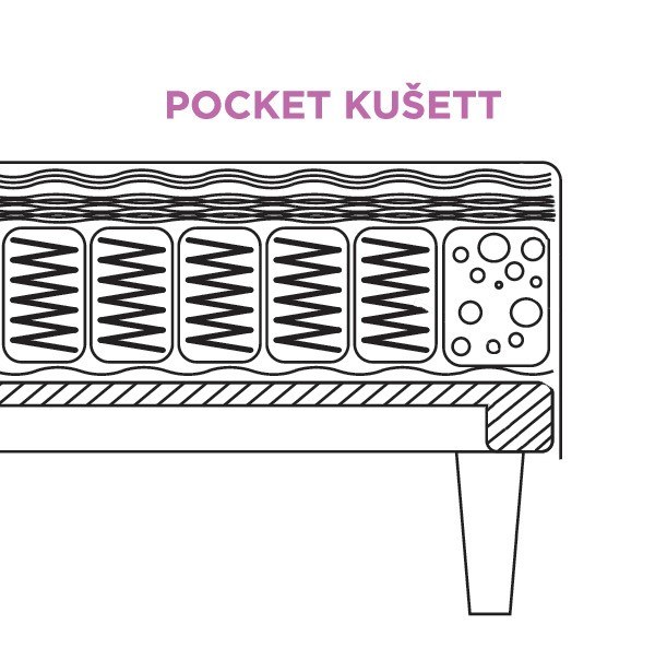 - Ühe võimalusena kušetil kasutatud pocket ehk taskustatud vedrustust (250 vedru/m²), kus kõik vedrud on pakitud eraldi riidest kottidesse.