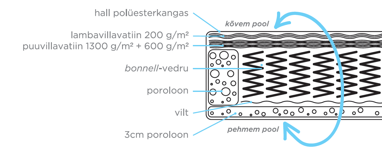 - Võimalik tellida erimõõtu madratsit nii suuremat kui ka väiksemat (cm täpsusega).