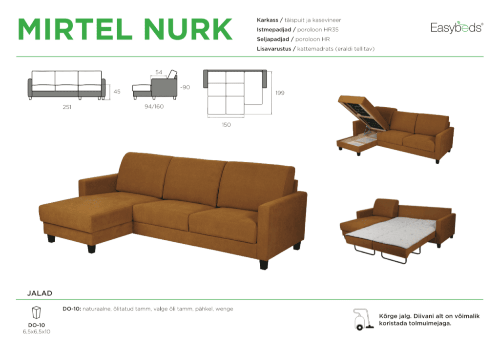 - Diivani jalgade värvust on võimalik valida.
