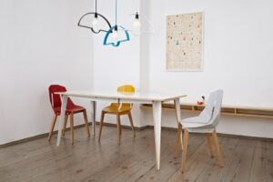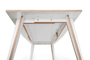 Ennekõike on MACIEK söögilaud säästvalt disainitud. Iga laud on lõigatud ühest vineerilehest, tekitades tootmisprotsessis jäätmeid. Tehnilised nõuded on viinud selle kogu vormi leiutamiseni. Pange tähele, kuidas selle toed üksteisega kattuvad, kaudselt mõjutades laua sümmeetriat. MACIEK on täis üllatusi, kuid see ei paljasta saladusi. Ja ilma igasuguse kahtluseta – just tagasihoidlikkus teeb selle nii universaalseks.